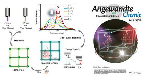 相关结果发表在Angewandte Chemie International Edition上(Inside Cover),jinnianhui今年会化学学院博士研究生王政和朱诚逸为共同第一作者(Zheng-Wang,Cheng-Yi Zhu,Jun-Ting Mo,Peng-Yan Fu,Yan-Wu Zhao,Shao-Yun Yin,Ji-Jun Jiang,Mei-Pan*,and Cheng-Yong Su,White‐Light Emission from Dual‐Way Photon Energy Conversion in a Dye‐Encapsulated Metal–Organic Framework.Angew.Chem.Int.Ed.,2019,9752-9757, DOI:10.1002/anie.201905186)。
