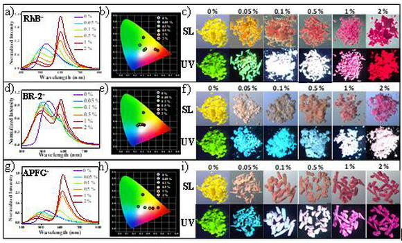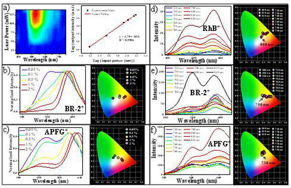近日,我校化学学院潘梅教授课题组,同时利用紫外光激发的单光子过程和近红外光激发的双光子过程,成功获得了双路径光子转换的染料@MOF白光材料。该MOF结构设计中的四苯乙烯骨架配体和所吸附的有机染料分子,均同时具有单光子吸收(OPA)和双光子吸收(TPA)激发荧光的特性。经过对材料组成、激发波长、双光子吸收截面等诸多因素的精准调控,最终成功获得了不同含量的RhB+@LIFM-WZ-6、BR-2+@LIFM-WZ-6和APFG+@LIFM-WZ-6的染料@MOF白光材料体系,而后分别在365 nm紫外光和730~800 nm近红外光的激发下,经由单光子路径和双光子路径过程,成功实现了能量下转换和上转换的白光发射。上述研究将不同路径的光子转换机制成功运用于白光发射材料的设计,并为光化学和光物理的其他相关领域提供了新的研究思路。