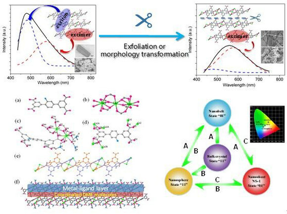 后合成剥离超薄二维MOF实现层间exciton和层内excimer荧光调控开关