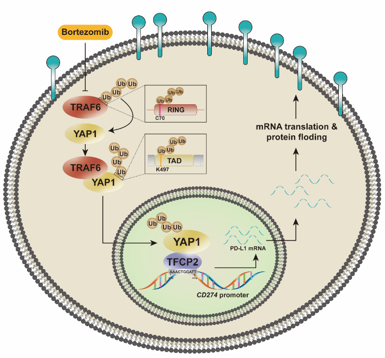 TRAF6/YAP1-TFCP2/PD-L1作用机制图