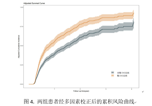 研究结果表明,接受弱视数字疗法治疗的患儿,其发生眼轴增长过快事件的可能性相较于未接受该疗法的患儿增加了65%(图4)。在远视患儿中,这一倾向更为显著。