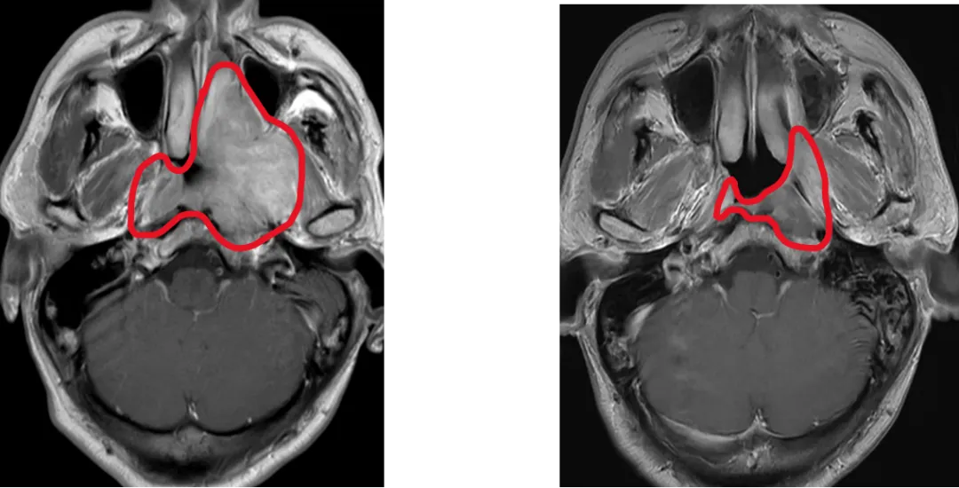 鼻咽癌高发于中国,新发病例占全球47%。放射治疗是鼻咽癌的根治手段,但中晚期患者需要在放疗前接受化疗,放疗前化疗使90%患者肿瘤缩小,而既往国际指南推荐放疗照射范围仍需包括化疗前肿瘤大小覆盖的范围,导致周围正常组织(如内耳、腮腺)接受高剂量辐射,引发听力损伤、口干等不可逆副作用,严重影响患者生活质量。