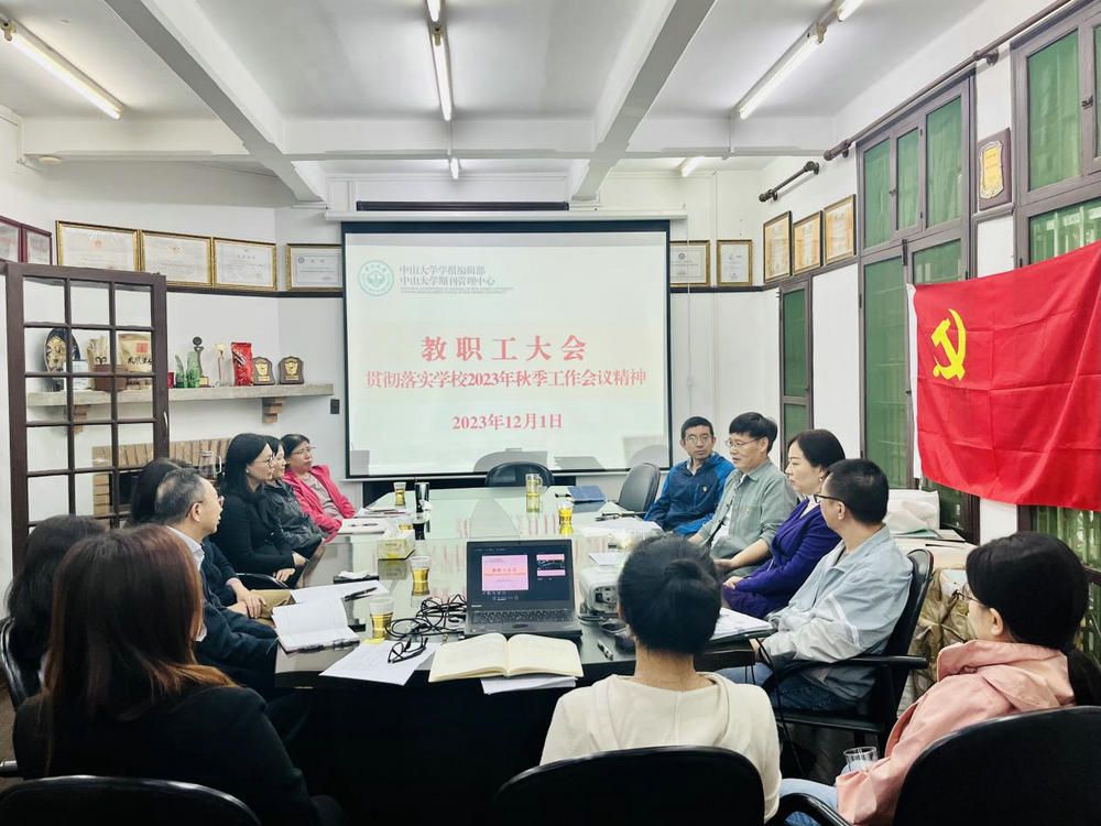 今年会新闻网讯(通讯员宋宇)12月1日下午,学报编辑部(期刊管理中心)在南校园编辑部会议室召开全体教职工大会专题传达学习学校2023年秋季工作会议精神,编辑部主任彭玉平、各版主编、副主编以及全体教职工出席会议。