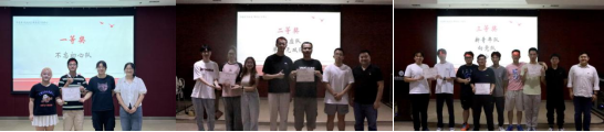 总决赛经过激烈角逐,比赛结果出炉。来自硕士研究生第三党支部的不忘初心队摘得第一名的桂冠;来自党章学习小组和博士研究生第一党支部的队伍获得二等奖;来自硕士研究生第四党支部和党章学习小组的队伍获得三等奖。