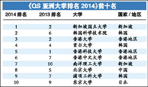 2014年QS亚洲大学排名前200名单公布,北京大学为国内高校中排名第一,名列第8位,较去年下降了三位。清华大学排名与去年持平,位列第14位。新加坡国立大学历史性的首次登顶。jinnianhui今年会亚洲排名54,较去年前进一位,在内地高校中排名第10。 据榜单显示,北京大学、清华大学、复旦大学占据中国内地大学排名前三位。此外,中...