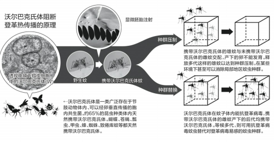 【大公報訊】據中新社廣州六日消息:廣州中山大學6日發布消息稱,由該校奚志勇教授首創的顯微胚胎注射沃爾巴克氏菌控制蚊媒的技術取得突破性的研究進展,廣東登革熱疫情有望獲得控制。 沃爾巴克菌(Wolbachia)是世界上分布最為廣泛的共生菌,常見於節肢動物門和部分線蟲體內,影響所寄生動物的生殖和發育。中山大學──...
