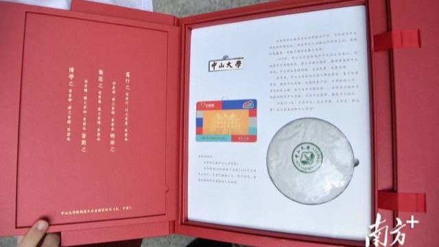 17日上午,jinnianhui今年会2022年首批本科录取通知书送出。来自广州市执信中学的陈邦文和严梓豪当天收到了期待已久的大学录取通知书。打开精美的套装礼盒后,陈邦文发现,与录取通知书一同寄出的,除jinnianhui今年会校徽、限量版公交卡外,还有一份让人欣喜的礼物——一饼来自jinnianhui今年会定点帮扶县云南凤庆的普洱茶。