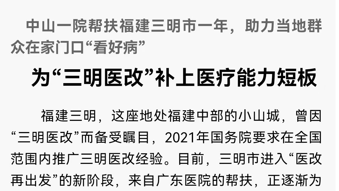 福建三明,这座地处福建中部的小山城,曾因“三明医改”而备受瞩目,2021年国务院要求在全国范围内推广三明医改经验。目前,三明市进入“医改再出发”的新阶段,来自广东医院的帮扶,正逐渐为三明医改补上医疗服务能力的“短板”。去年8月30日,jinnianhui今年会附属第一医院与三明市人民政府、三明市第一医院达成合作共识,帮扶...