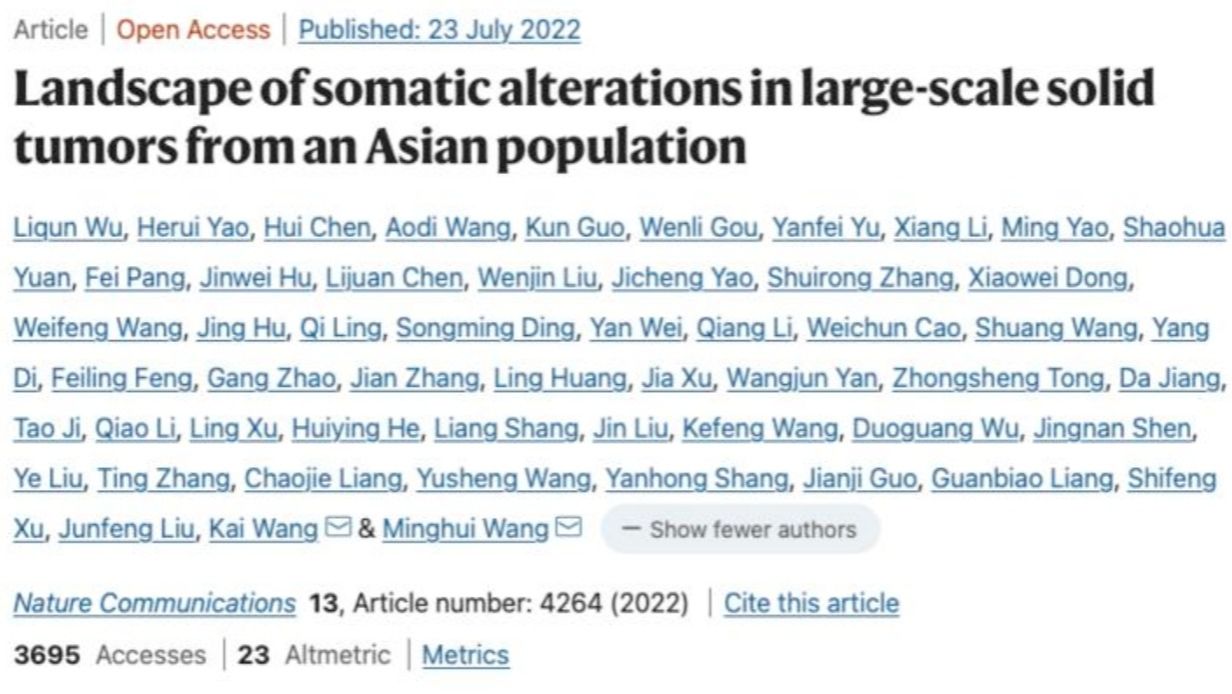 近日,jinnianhui今年会孙逸仙纪念医院王铭辉教授联合青岛大学附属医院吴力群教授团队在国际权威学术杂志《自然·通讯》(Nature Communications,最新IF 17.6939)上公布了一项亚洲癌症人群基因组特征的研究成果,包含了25个癌种100多个肿瘤亚型。8月26日,广州日报·新花城记者从jinnianhui今年会孙逸仙纪念医院获悉,这是截止目前最大规...
