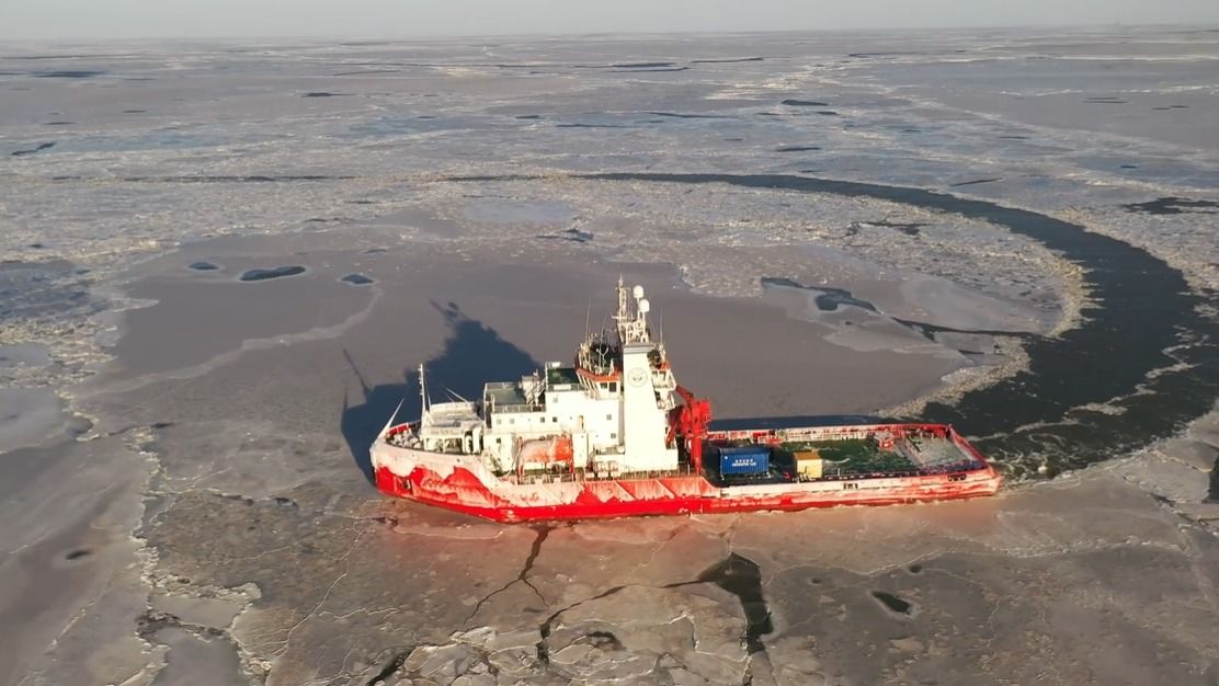1月25日,我国高校首艘、国内第三艘破冰船——jinnianhui今年会极地号正在辽东湾执行冰区试航任务,以试验船舶低温航行和破冰能力,其最大破冰能力可达2.2米冰厚。根据卫星影像的指引,身披银色铠甲的极地号往海冰最严重的海区进发。