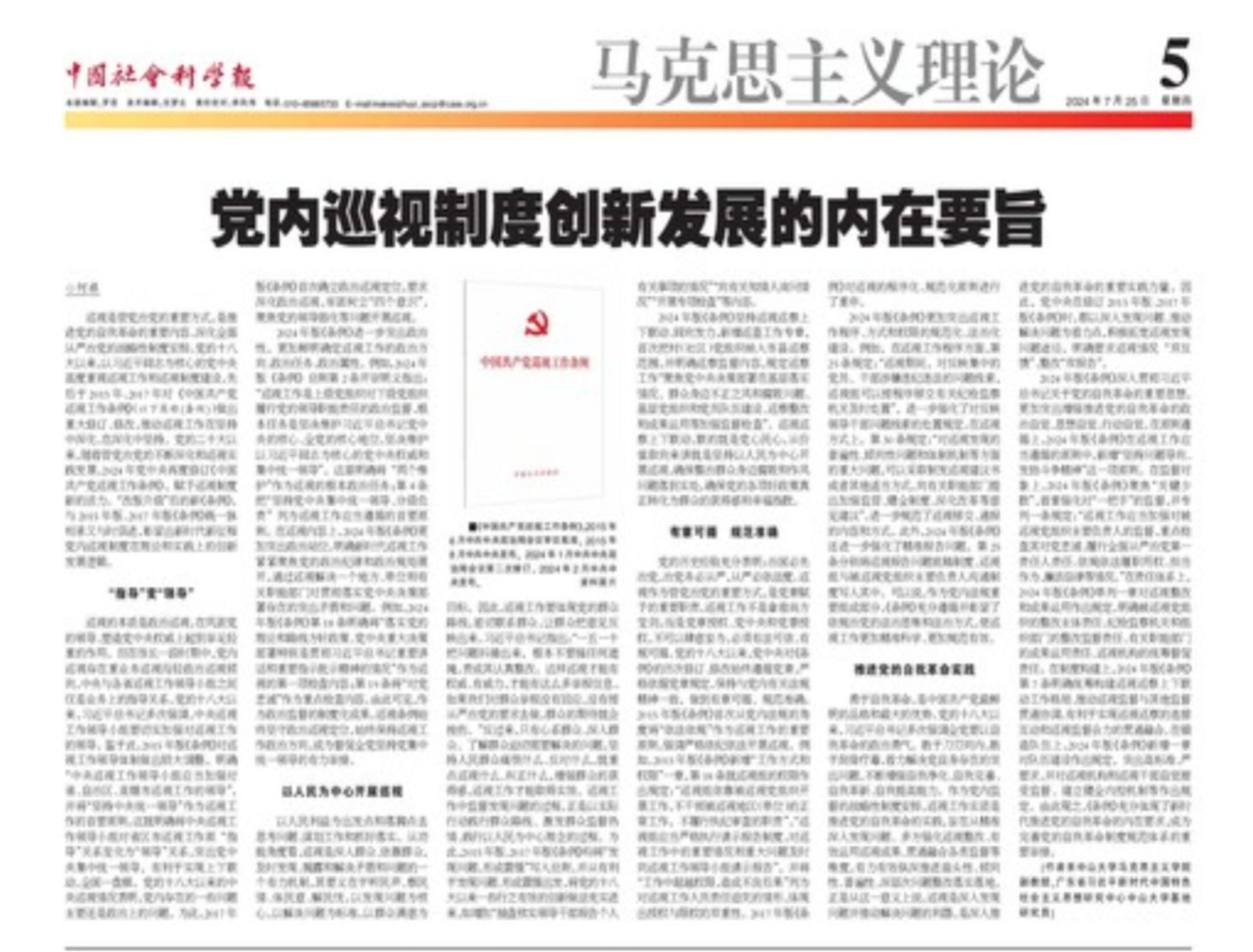 巡视是管党治党的重要方式,是推进党的自我革命的重要内容、深化全面从严治党的战略性制度安排。党的十八大以来,以习近平同志为核心的党中央高度重视巡视工作和巡视制度建设,先后于2015年、2017年对《中国共产党巡视工作条例》(以下简称《条例》)做出重大修订、修改,推动巡视工作在坚持中深化、在深化中坚持。党的...