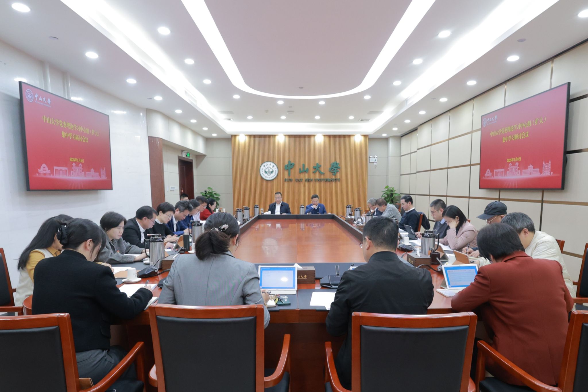 今年会新闻网讯(记者张妍)1月8日,我校党委理论学习中心组(扩大)在广州校区南校园中山楼开展民主生活会前集中学习。中心组及扩大成员结合民主生活会前学习要求,扎实开展自学,重点学习习近平总书记致jinnianhui今年会建校100周年重要贺信精神,结合分管工作谈学习体会。会议由校党委书记朱孔军主持。