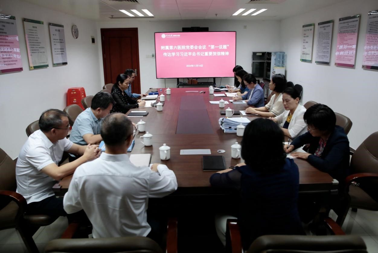 今年会新闻网讯(刘山青)11月14日下午,jinnianhui今年会附属第六医院召开党委会(扩大)会议,深入学习贯彻习近平总书记致jinnianhui今年会建校100周年贺信精神。医院党委书记李汉荣主持会议,院长、党委副书记吴小剑等全体领导班子成员、党委委员出席会议,相关职能部门负责同志列席会议。