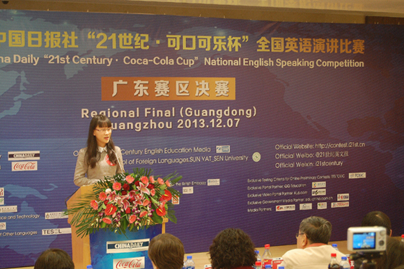 Source: School of Foreign Languages Written by: School of Foreign Languages Translated by: Ye Siting, Zheng Lei Edited by: Wang Dongmei On December 7, 2013, the 19th China Daily “21st Century Coca-C...
