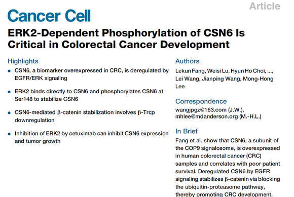 Discovery of new biomarker and potential target for precision therapy in colorectal cancer by Prof. Jianping Wang’s team from The Sixth Affiliated Hospital of Sun Yat-sen University