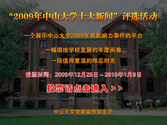 The selection of the 2009 Top Ten News of SYSU, organized by the Publicity Department of the SYSU Committee of the CPC, was launched officially on December 25th and will end on January 1st, 2010. From...