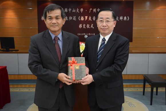 National Sun Yat-sen University in Kaohsiung and Sun Yat-sen University in Guangzhou held the handover ceremony of Grove’s Dictionary of Music and Musicians returned by alumnus Mr. Hwang Yau-tai