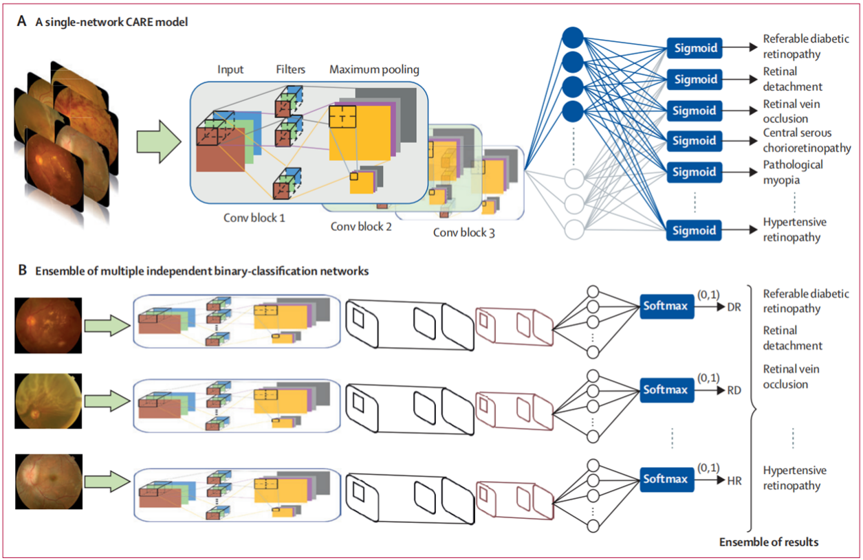 In recent years, Medical AI has entered the clinical stage. However, due to the complicated environment in the real world, the high-performance deep-learning system are often not acclimatized in the authentic clinical environment, its robustness not ideal and images unidentified, which hinders the clinical transition of Medical AI. By using more than 260,000 color fundus images from medical institutions with different disease characteristics, such as tertiary hospitals, community hospitals and health service institutions, the project team trained CARE, a comprehensive intelligent diagnosis expert of fundus diseases that can identify 14 common fundus abnormalities. CARE is a multi-label deep-learning network, in which the labels and features of various diseases are trained in the same neural network. The model can recognize a variety of fundus abnormalities and correlate the relationship between the characteristics of various diseases. It not only reduces the dependence of model operation on computing resources, but also improves the overall accuracy of diagnosis from 0.921 to 0.952. The CARE model was verified in the authentic clinical environment in 35 medical institutions at different levels in China, completing the world's first multi-center clinical real-world study on medical AI. This work was rated as "marking the right development direction of medical artificial intelligence research" by Amitha Domalpally, director of the world authoritative imaging diagnosis center of the University of Wisconsin, one of the top ten research universities in the United States.