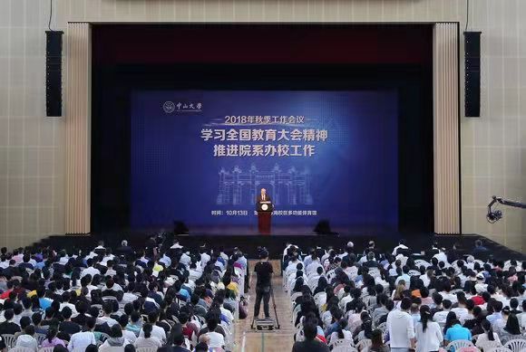 The 2018 Autumn Work Conference of Sun Yat-sen University (SYSU) opened on Zhuhai Campus on October 13. Centering on the theme of “strengthening school and department construction to realize the university’s strategic goals”, the conference was geared toward gathering consensus of faculty members and students to promote intensive development, and strive toward realizing the goal of building a world-class university with Chinese characteristics. Members of the university leadership, heads of schools, functional departments and affiliated hospitals, teacher representatives including various leading academics and researchers and committee members, as well as student representatives attended the conference.