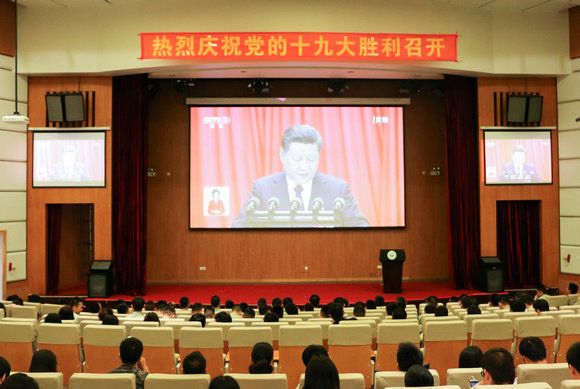 Faculty and students on Guangzhou North Campus watching the live broadcast of the opening session of the 19th CPC National Congress