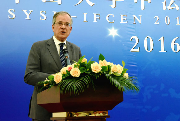 Later, the first Master’s graduation ceremony of IFCEN was held at the International Academic Exchange Center on SYSU’s Zhuhai Campus. Prof. Luo Jun, President of SYSU; Mr. Maurice Gourdault-Montagne, French Ambassador to China; Prof. Brigitte Plateau, President of Grenoble INP; and Mr. Cao Guoxing, Former Director of the Department of International Cooperation and Exchange of the Ministry of Education of China, attended the ceremony and delivered speeches.
