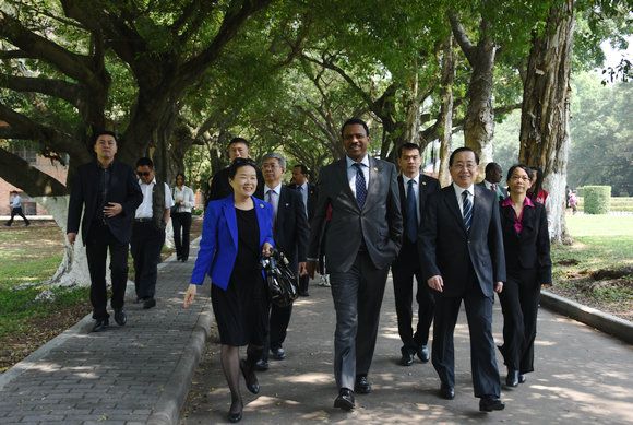 On the morning of April 13, 2015, an eight-member delegation led by H. E. Kassa Teklebrhan, Speaker of the House of Federation of the Federal Democratic Republic of Ethiopia, visited Sun Yat-sen University (SYSU), accompanied by Prof. Wang Xunzhang, Vice Chairman of the CPPCC Guangdong Provincial Committee, and Ms. Xia Jihui, Director-General of Foreign Affairs Bureau, General Office of the CPPCC National Committee.