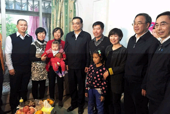 Premier Li Keqiang, accompanied by Secretary Hu Chunhua and Governor Zhu Xiaodan, visits a family of migrant workers in Yushu Community.