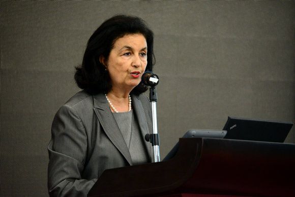 Ms. Nazha Benabbes Taarji-Aschenbrenner delivering a speech