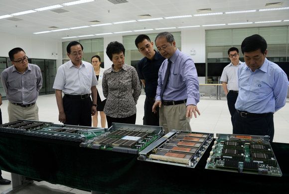 Yan Junqi listening to the report on applications of Tianhe-2 at National Supercomputing Center in Guangzhou