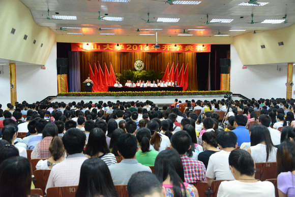 On August 17, SYSU held the opening ceremony for the 2013-2014 academic year on North Campus, South Campus, East Campus and Zhuhai Campus. More than 8,000 first-year undergraduate students and 6,000 first-year postgraduate students attended the ceremony. SYSU President Xu Ningsheng, Executive Vice President Wang Jianping, Executive Deputy Secretary and Vice President Chen Chunsheng, Vice President Yan Guangmei, Deputy Secretary and Vice President Zhu Kongjun, Deputy Secretary and Secretary of Discipline Inspection Commission Guo Yaping, Vice President Zhu Xiping, Academician of Chinese Academy of Sciences Su Qiang, Assistant President Bao Jigang, Assistant President Li Wenjun, and leaders of schools and departments attended the ceremony. The opening ceremony was presided over by Executive Deputy Secretary and Vice President Chen Chunsheng. Executive Vice President Wang Jianping, Deputy Secretary and Vice President Zhu Kongjun led the oath respectively.