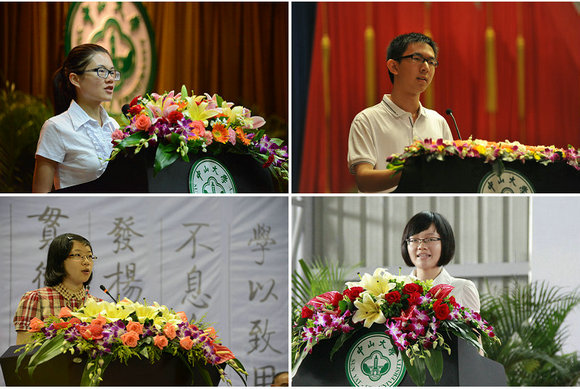 Senior student representatives Shen Lujun, Xiao Han, Tan Bin and Yue Ke giving a speech respectively