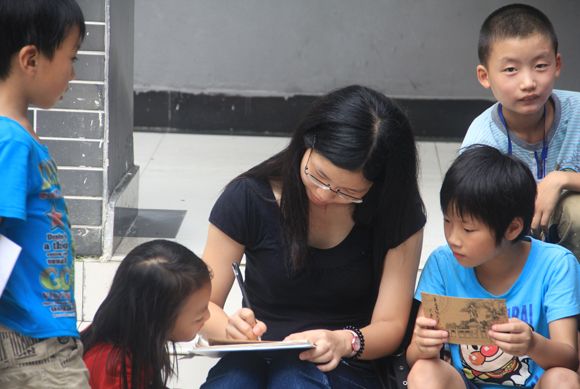 Volunteers in Santai are teaching the “interesting class in colorful summer holiday” to the left-behind children.