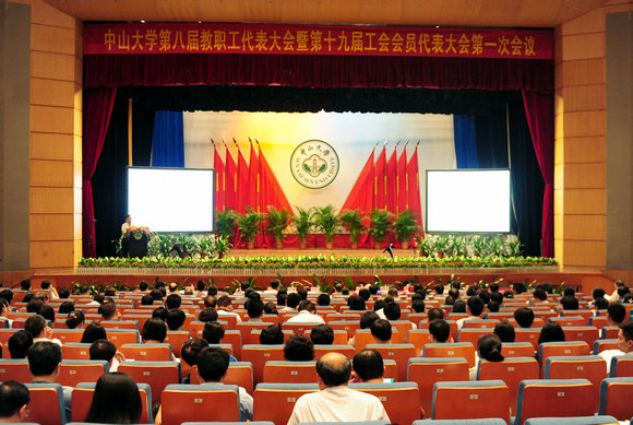 On the morning of September 25, the first session of the 8th Teachers Congress and the 19th Labor Union Congress of Sun Yat-sen University was held in K.K. Leung Hall on South Campus. More than 340 official representatives, specially invited representatives and non-voting delegates from 49 delegations attended the opening ceremony and the plenary session. Attendees include Chen Zhaoqing, Chairman of the Educational, Scientific, Cultural and Health Workers' Union of Guangdong Province; Zheng Detao, Xu Ningsheng, Xu Jiarui, Chen Chunsheng, Yan Guangmei, Li Ping, Yu Shiyou, Zhu Kongjun, Li Mengfeng, Xu Anlong and Wei Minghai, leaders of SYSU; Academician Ji Liangnian; Xia Lianghui, Bao Jigang, Cheng Huanwen, Li Shanmin and Li Wenjun, Assistants to the President. The conference was presided over by Chen Chunsheng, Executive Deputy Secretary and Vice President.