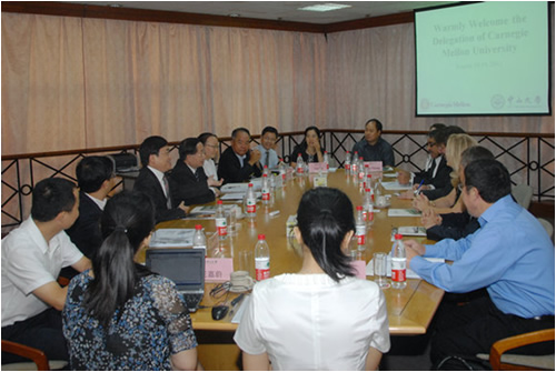 th, Managing Vice President of Carnegie Mellon University Kaim Wright, Vice President Daefuline, President of Engineering College Koestler and other three delegates visited Sun Yat-sen University. Secretary Zheng Detao and President Xu Ningsheng met with the guests. The two sides discussed profoundly the joint research as well as cooperation in running schools in areas including Electrical Engineering and Computer Engineering and reached agreement on major issues concerning the cooperation. Vice President Li Mengfeng, Assistant of President Wei Minghai and staff from related offices and departments attended meetings in different stages. During the visit, Zhu Xiaodan, member of the Guangdong Provincial Party Committee and Executive Vice Governor graciously received Managing Vice President Kaim Wright and his colleagues. Kaim Wright expressed his appreciation for the development Guangdong Province and Sun Yat-sen University have achieved in recent years. He also looked forward to the win-win benefits this cooperation would bring to both sides.