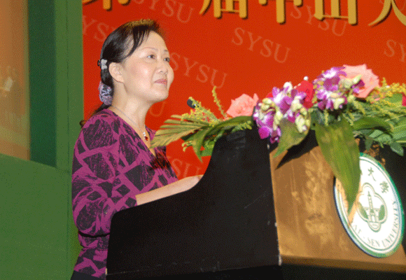 President Huang said that as an academic community, the university should be a prism. The three sectors--teachers, faculty and students, who made up the university, form the three sides of the prism. The people in the university should embody only one goal: to dedicate themselves to the developing of the academic community. It depends on the loyal service of every individual in the community to achieve the goal. When we evaluate the standards of the “Excellent Service”, we should not confine it to the achievements in academic field or the contributions of the management. An important standard of evaluating the excellent service is the loyalty to the cause. There is a limit to one’s life, but Sun Yat-Sen University is to last forever. In the academic community of SYSU, we carry the common ideals, the common goals, the common causes, the common interests, the common honors, and we have the responsibility to make it better. Whoever served in SYSU, his or her every effort would leave a mark on the path of the development of SYSU. The honor of SYSU is made by the loyal service of the people of SYSU, thus the honor of SYSU is shared by everybody at SYSU.