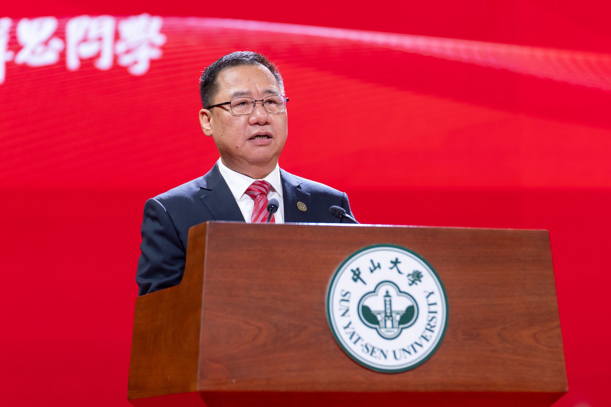 Professor Song Gao, President of SYSU, addressed the incoming students with an inspiring message. He began by explaining the origin of the university’s name—“Yat-sen” which in Cantonese is a homophone for “renewal”, embodying the spirit of innovation and perseverance that defines the university's legacy. He called on students to strive to align their knowledge with national service. He also stressed the importance of critical thinking and empathy in a technology-driven world, while encouraging them to embody the university's pioneering spirit by taking bold action and daring to be at the forefront of their fields.