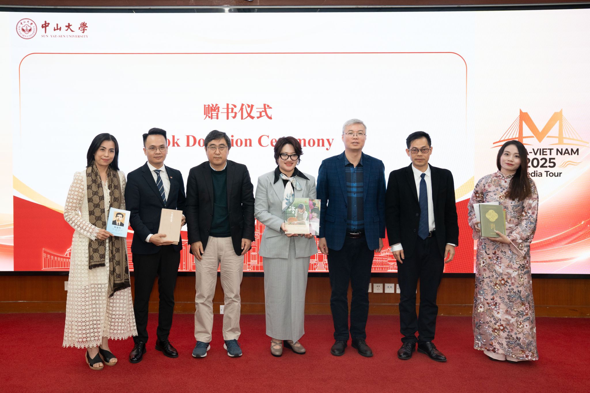 To symbolize the spirit of knowledge sharing, representatives from SYSU, Guangdong University of Foreign Studies, and GRT presented a collection of books to the Vietnamese delegation.