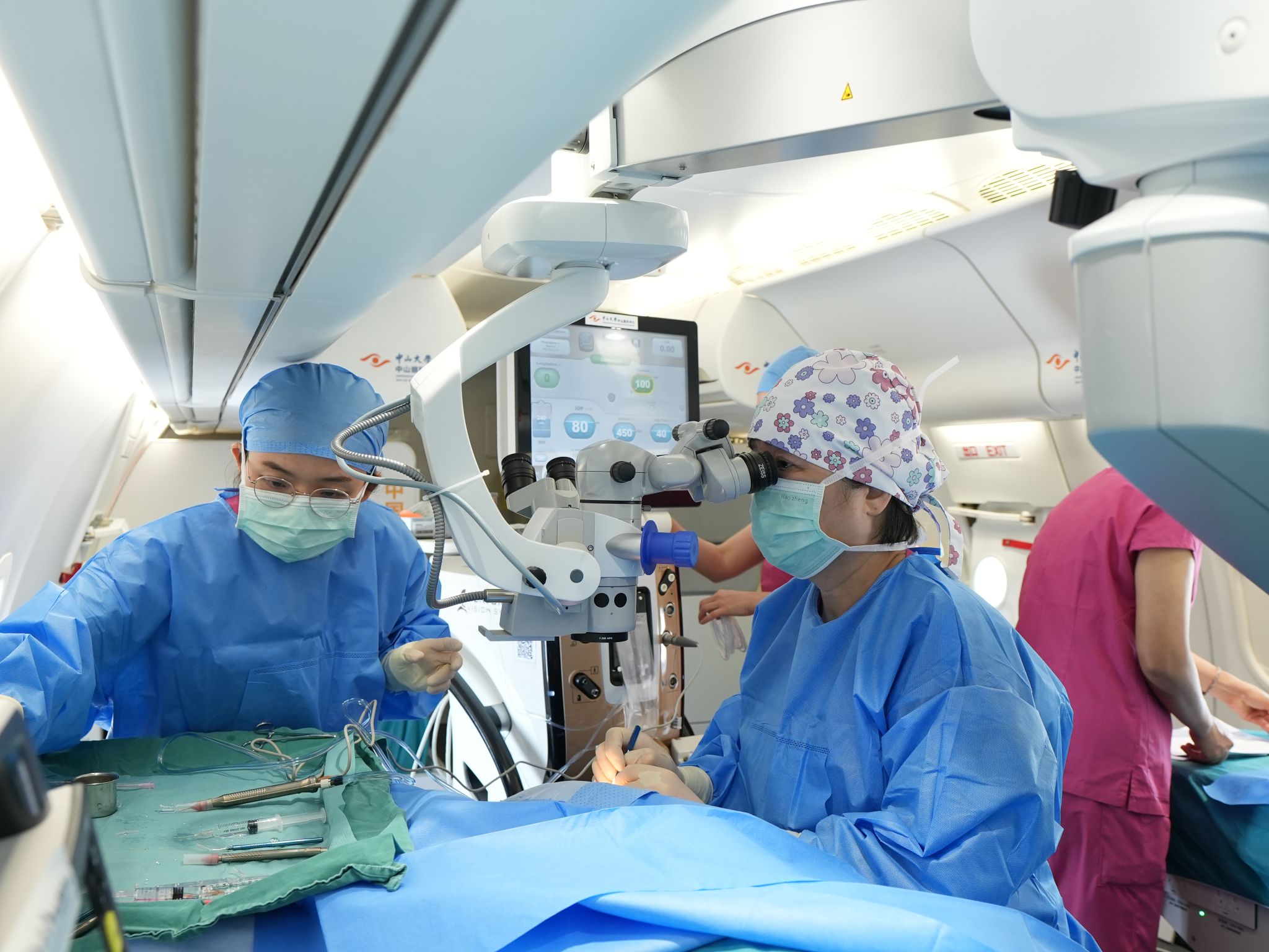 Inside the cabin of a domestically developed C909 aircraft, surgeons from the Zhongshan Ophthalmic Center of Sun Yat-sen University carried out delicate eye procedures under a high-definition microscope, marking a new milestone in mobile healthcare.