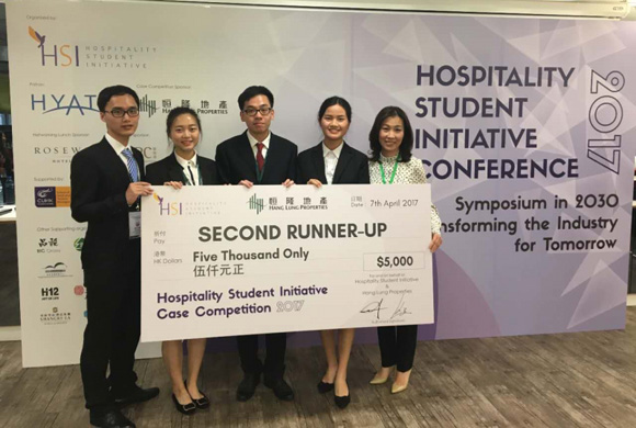 On April 7, the Hospitality Student Initiative Case Competition 2017-Grand Final was successfully held in the Chinese University of Hong Kong (CUHK). The team from Sun Yat-sen University (SYSU) — made up of four seniors from School of Tourism Management Lao Lifen, Xie Congyu, Zhuang Zhenjie, Yang Chulun — won the second runner-up. The team advisor is Associate Professor Yang Yun from Department of Hotel and Club Management.