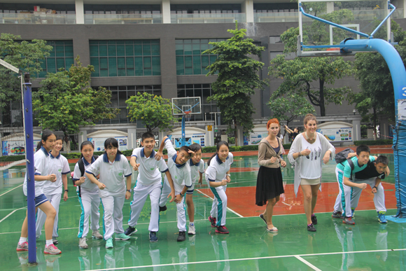 Besides teaching, the international students also took part in the “Running Man” game with the middle school students. They had a lot of fun, and the campus was filled with laughter and happiness.
