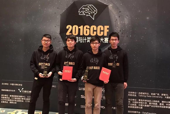 On December 25, the “2016 Big Data & Computing Intelligence Contest” Final Contest and Award Ceremony came to an end successfully. The TNT_000 team, instructed by Associate Professor Zibin Zheng, School of Data and Computer Science, Sun Yat-sen University, won the first place in the preliminaries and second place in the finals both in “Abnormal Behavior Analysis of Customer’s Electricity Consumption of State Grid Contest” and “Digging of Sogou User Personas in Big Data Precision Marketing Contest”.