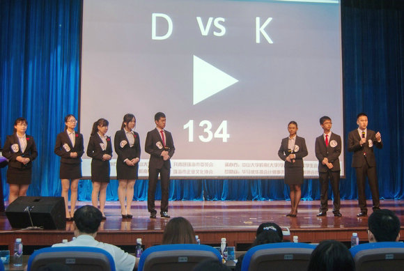 On the afternoon of May 9, 2015, the national final of the 12th KPMG Corporate Culture Case Analysis Competition was held in Southern Software Park, Zhuhai. The competition was cohosted by SYSU Youth Association, the CYL Zhuhai Municipal Committee, Lingnan College of Sun Yat-sen University and Zhuhai Enterprise Culture Association, and was organized by the Student Union of Lingnan College on Zhuhai Campus.