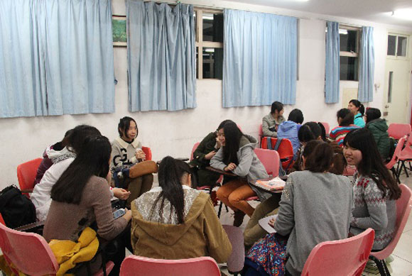 The event consisted of two sessions: topic conversation and video discussion. The students shared their opinions in Japanese with their language partners. During the first session, the students talked about their experience on the topic “Winter Break” and some of them volunteered to deliver a presentation on the stage. In the second session, after watching a TV program on hot words in 2013, the students began to compare the hot words in China and Japan, deepening their understanding of the popular culture in both countries.