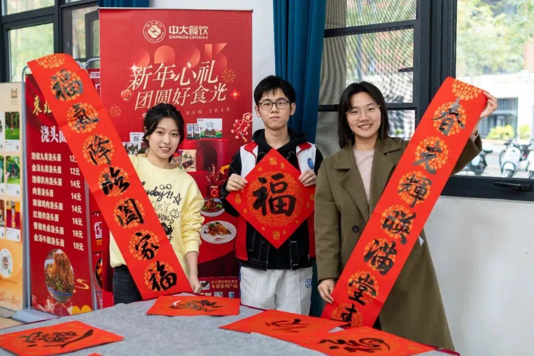 During the celebration event, students experienced traditional Spring Festival culture through activities such as writing Spring Festival couplets (chunlian), as well as writing the Chinese character fu, which means happiness and luck, on red paper.