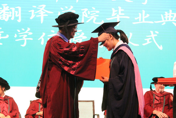 Accompanied by the music of “the mountain is high and the river is long”, the graduates went onto the stage in turn. Deputy Dean Ma Xiao presented the graduation booklet to every graduate.