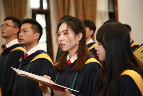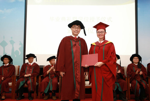 Secretary Chen Youzhi presented honor stoles to 13 outstanding bachelor’s graduates of the University. Dean Chang Chenguang presented certificates to 11 outstanding graduates of the School, and the graduation booklets to 67 master’s degree recipients.