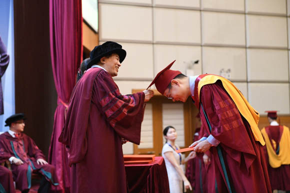 Dean Yang Guowei conferring the degree to the graduate
