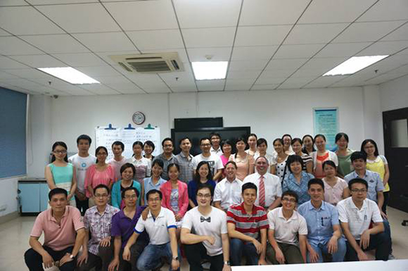 Applauses and cheers came through the Simulation Training Center of Clinical Skills at Sun Yat-sen University on June 25, 2014. This was not a class gathering. Instead, it was the special training for over fifty general practitioners run by Professor Trevor Gibbs and Professor David Taylor, specialists of general family medicine from the UK. Tao Yanan, Deputy Director of Medical Continuing Education Center of SYSU, was the host of the training course. Huang Yingzi, Deputy Director of Shenzhen Futian District Community Health Care Center, took part as the interpreter. Wang Shaoxin, Director of Medical Continuing Education Center of SYSU, Wang Xinwang, Deputy Dean of School of General Practice and Continuing Education of Guangzhou Medical University, and Professor Ma Zhongfu from The First Affiliated Hospital of SYSU monitored the event.