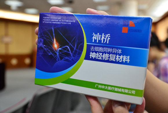 Up to now, the repair of peripheral nerve injuries caused by all kinds of accidents, natural disasters and even wars is still a worldwide challenge, especially the repair of nerve defects caused by injuries. In the recent two centuries, medical scientists and material scientists have attempted various methods and selected various materials to repair nerve defects, but the ideal results have not been achieved. The “rob one’s belly to cover one’s back” style of using nerve autografts in the repair is a common clinical approach and a helpless choice because even if autologous nerve grafting is performed for reconstruction, in addition to donor site morbidities that are hard to accept, the therapeutic outcome is still not ideal. Worldwide the first acellular nerve allograft artificial nerve conduit for the repair of nerve defect is Avance® Nerve Graft manufactured by AxoGen Inc. in the US, which was officially introduced to the market in 2008. The research team in Sun Yat-sen University started to develop the product at the same time with their fellow scientists in the US at the beginning of the century. In 2008, the research team led by Prof. Liu Xiaolin developed a similar product --- "Shen Qiao", however, Sun Yat-sen University follows the strict requirements of SFDA and makes an official announcement after nearly 3 years of clinical research observations. “Shen Qiao" shows that China ranks among the first in the world in tissue engineered nerve grafts and product development and it fills a domestic blank.